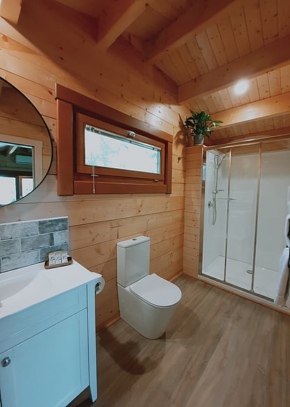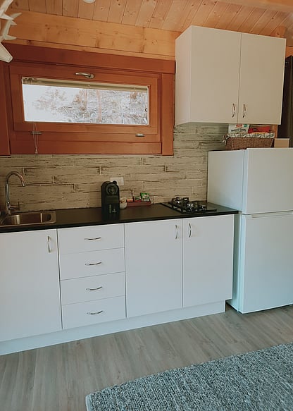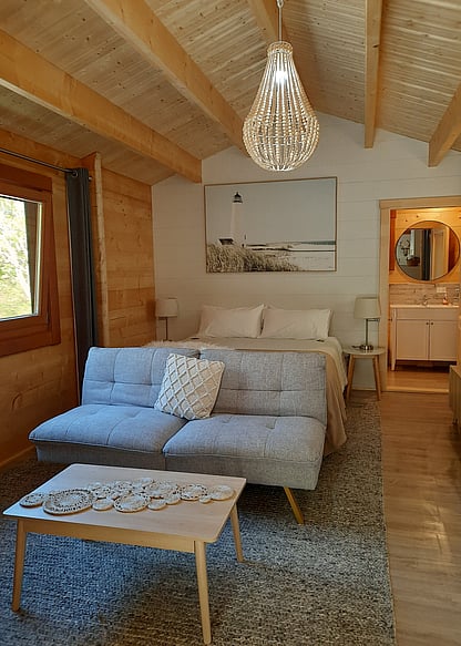Our cabins come from the Czech Republic and are made from solid spruce, giving them a natural feel that blends seamlessly with the surrounding bush. They offer a touch of luxury, making your stay extra comfortable. The cabins are close to our own home, so we're always on hand if you need anything. But if you prefer to keep to yourself, we'll happily give you space.
